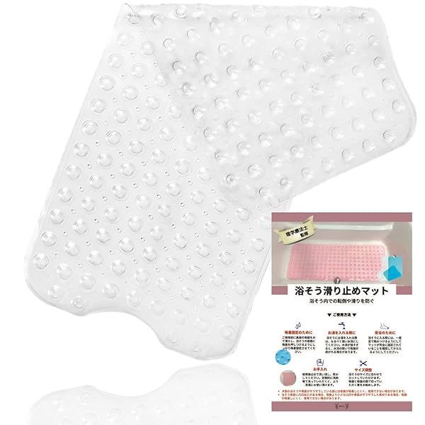 【理学療法士監修】 浴槽内滑り止めマット 説明書付き お風呂 転倒防止 100×40cm 浴そうすべり止め 浴槽マット 介護 入浴 介助 浴室 バスマット(クリア)