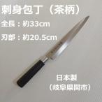 刺身包丁 日本製 柳刃包丁 刺身を切る 樹脂柄 茶柄 関の刃物 濃州正宗 全長33cm 刃部20.5cm 和包丁 一方向に切る 家庭で研げる 片刃 右利き用
