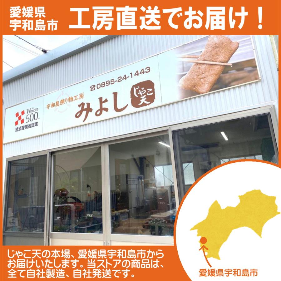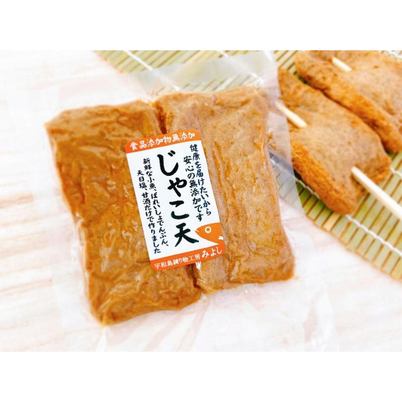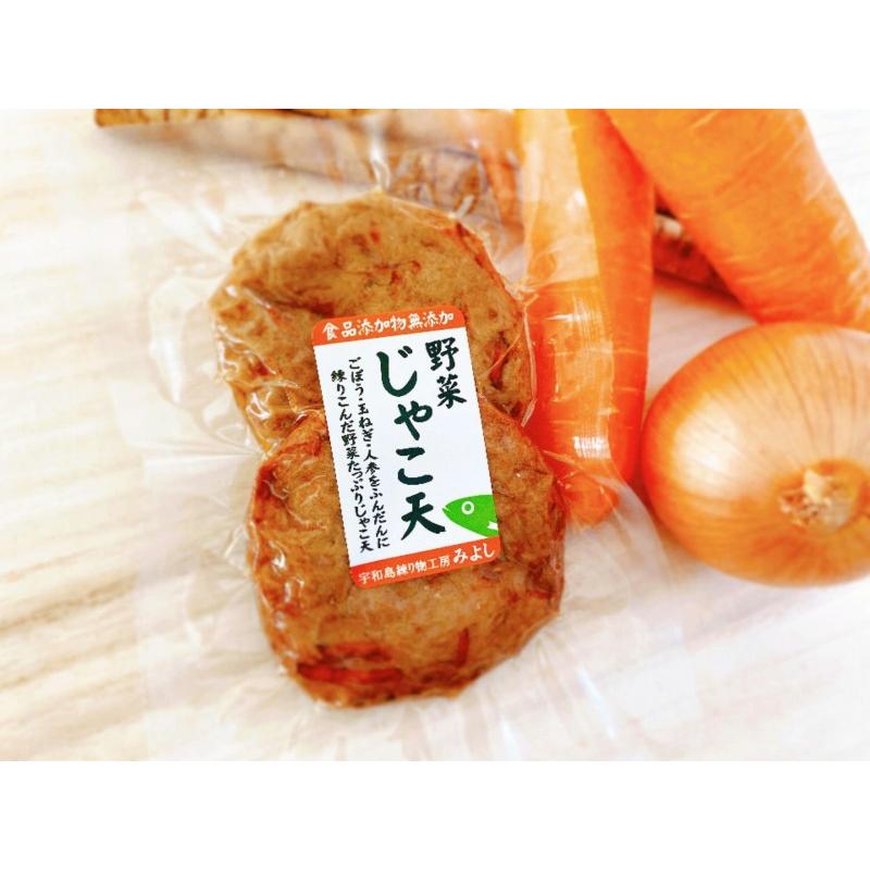 ちょっとしたお返しやプレゼントに。みよしじゃこ天お手軽プチセット。■セット内容 じゃこ天2枚入り×1袋 野菜天2枚入り×1袋 ニラ生姜天2枚入り×1袋 魚団子150g入り×1袋■保存方法・賞味期限 要冷蔵(10℃以下で保存) じゃこ天・魚団子 21日 野菜天・ニラ生姜天 14日■製造者 宇和島練り物工房みよし 〒798-0044 愛媛県宇和島市野川甲1207-3 TEL 0895-24-1443