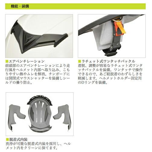 リーズナブルな価格でありながら、快適ライディングをサポートする各種機能を装備した、お買い得なフルフェイスヘルメット。◆規格:PSC SG(全排気量乗車適合)◆脱着式内装採用(洗浄可能)◆ラチェット式ワンタッチバックル採用◆エアベンチレーション装備◆開閉式マウスシャッター装備◆届出事業者:リード工業