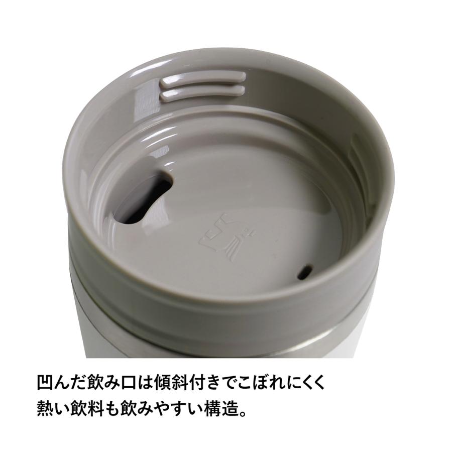 ・凹んだ飲み口は傾斜付きでこぼれにくく、熱い飲料も飲みやすい構造。