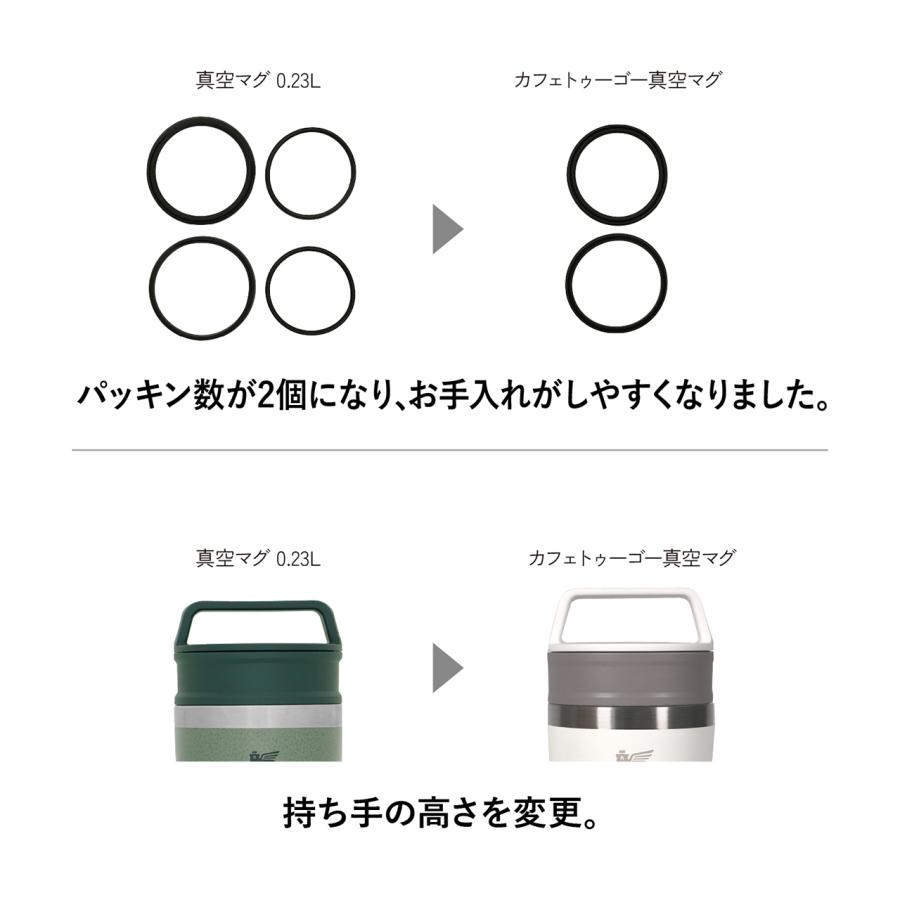 ・従来の真空マグ 0.23Lより、パッキン数を2つに減らし、お手入れがよりかんたんになりました。