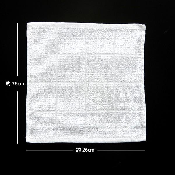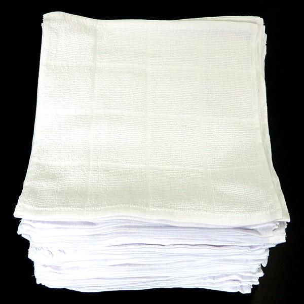 昔ながらのおしぼりタオルです。喫茶店などでよくみかけるシンプルで真っ白なブロック柄です。おしぼりとしての用途以外にもさまざまな用途に活用できる便利アイテムです。