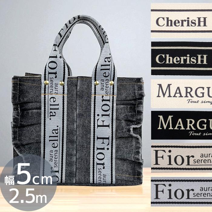 デザイン ロゴ 持ち手テープ50mm長さ 約2.5m 全4色MYmamaオリジナルデザインの50mm幅持ち手テープ。トートバッグ等にぴったりで、おしゃれで高級感のある仕上がりに。丈夫な素材ですが、肌触りがソフトなテープ。幅がしっかりあるので、長時間使用しても痛くなりにくい◎おでかけ用ショルダーにもぴったりです。3デザイン・4色展開からお選びいただけます。丈夫でしっかりとしたテープはハンドメイドには何かと重宝するアイテムです。