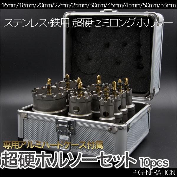 ★商品説明★ステンレス・鉄用 超硬セミロングホルソー10個セットです。ホルソーサイズ:53mm 50mm 45mm 35mm 30mm 25mm 22mm 20mm 18mm 16mm専用アルミ製ハードケース付き★発送詳細★ ●送料金額:基本送料無料です。 但し、北海道+330円、沖縄離島+550円別途おかかり致します。 ●通常便発送 発送目安:即日〜3営業日以内 ※お支払い方法、ご購入のタイミング、在庫状況により異なります。