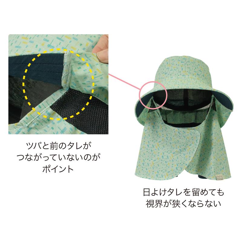メッシュの上には後ろツバがあり、日射しにも安心。