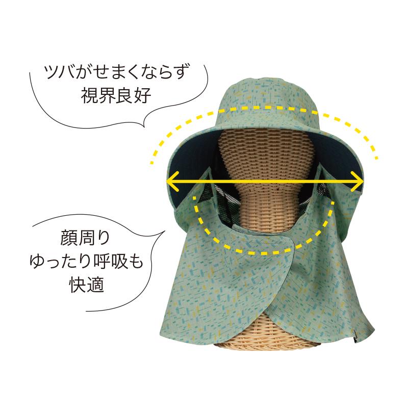 機能:顔周りゆったり、通気性、UVカット