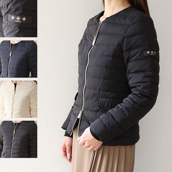 【 TATRAS タトラス NOKO ノコ ダウンジャケット LTAT25S4885-D 】TATRASを代表するノーカラー型の「NOKO(ノコ)」ライトダウンジャケット。肩の張りを拾わずバストから袖にかけて可動域を分散させるパターン技術に、ウエストを絞ったシルエットがコンパクトな印象。高品質のダウンを使用し保温性がありながら、ややタイトなフィット感でインナーダウンとしてはもちろん、一枚で着てもスリムでエレガントなスタイリングが可能な1着です。