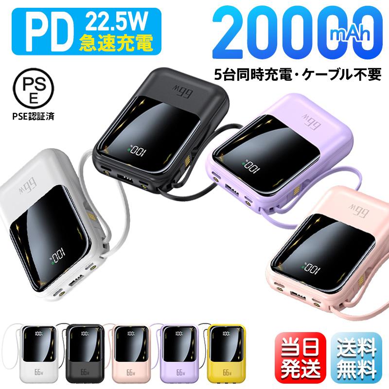 「クーポンで1980円」 22.5W高速充電 モバイルバッテリー 大容量 軽量 20000mAh iPhone TypeC 5台同時充電 災害用 スマホ 充電器 ケーブル不要 LED残量表示