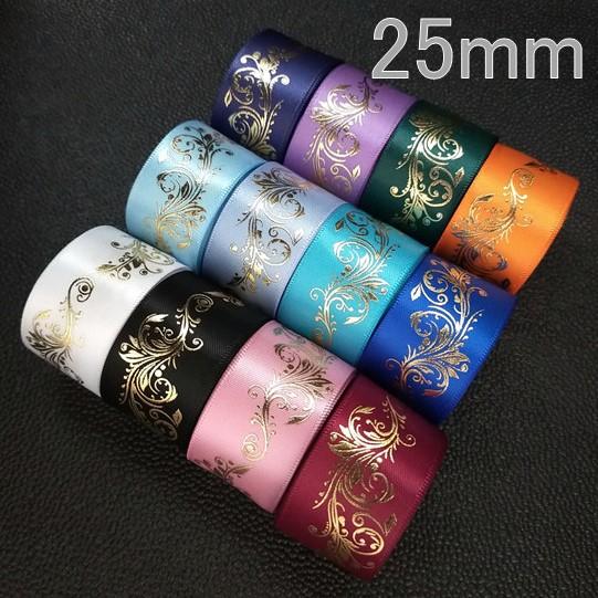 フローラル 箔押し サテンリボン ゴールド 25mm 全12色