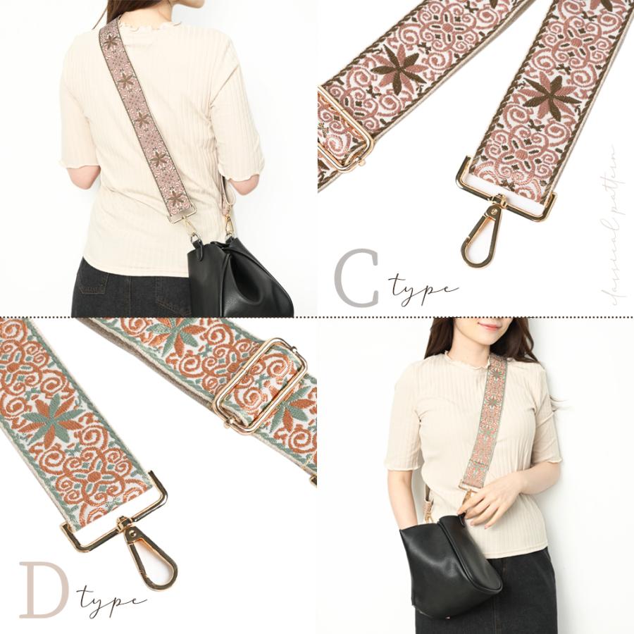 【商品情報】いつものバッグをさらに素敵に♪いつものバッグやシンプルなバッグに付け替えるだけで雰囲気が変わります。5cmと幅広だから肩に負担がかかりにくく、旅行用のバッグなどにつけてもOK◎荷物が多くてバッグが重く、肩こりでお悩みの方にもオススメ♪ファッションに合わせて組み合わせを楽しめます!【商品詳細】■ショルダー長さ:80-130cm■ショルダー幅:5cm■重量:130g■タイプ:全8タイプ