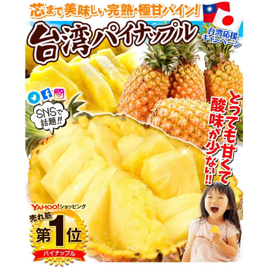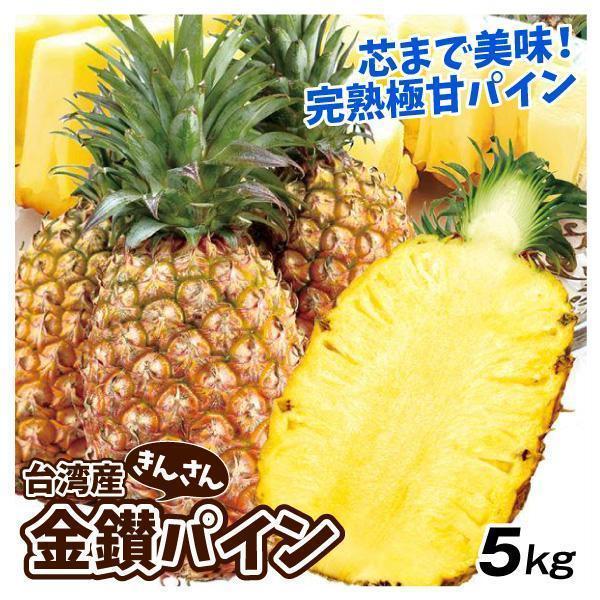 ●商品情報:「金鑚パイン」は酸味や繊維が少なく芯まで食べられる大人気パイナップル!口の中がピリピリしないので、パインの刺激が苦手な方にもとってもおすすめです。完熟収穫でなんとメロン並みの高糖度に!●産地:台湾●規格・サイズ:-●入数の目安:5kgあたり3〜4玉●配送形態:段ボール箱●配送温度:常温便●備考:※ご家庭用としてご用意いたします。多少の傷・変形果等はご了承ください。●送料:通常配送:送料無料北海道・沖縄:1箱(組)ごとに1500円