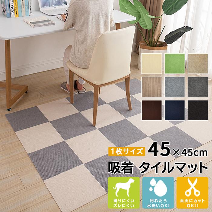 吸着式、置くだけ。接着剤などは一切いりません。さらにはさみを使って簡単にカスタマイズができ、部屋の隅や壁際などの場所でもぴったり敷き詰めることができます。