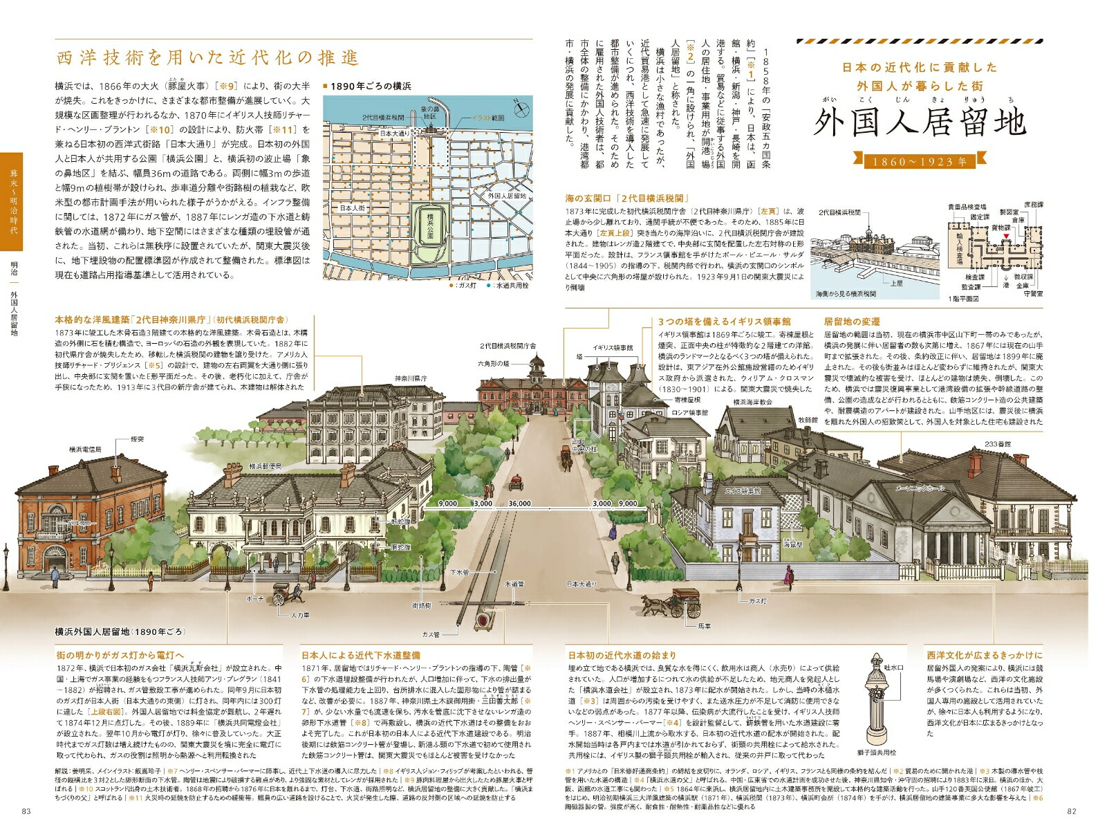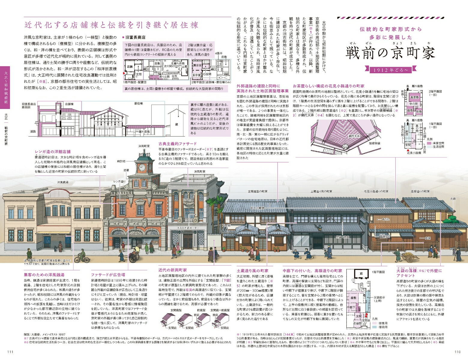 ハイレベルな再現イラストで、歴史上の風景が身近に感じられる!あの作品のあの舞台をもっと知りたい!日本建築史の教科書には表れない、庶民の住まい・町並みの風景まで解説家具やインテリア服装まで広い専門知識を得られる神社、寺院、城郭、文化財や名所…観光のお供にも最適◎縄文から近現代まで1冊でわかる日本の家と町並みの歴史こんな方に特におすすめ!・日本の住まいの歴史を手軽に知りたい方・日本の歴史を題材にした映画やアニメをもっと楽しみたい方・創作の背景資料が欲しいけど何から手を付けていいか分からない方日本の建築史は、用語の複雑さや現存する建物の少なさから、初心者にはイメージし辛いジャンルのひとつです。基礎知識がないと建物の違いを見分けるのも難しく、学びたくてもハードルの高さを感じている人も多いのではないでしょうか。しかし一方で、映画、ドラマ、アニメなどの時代ものコンテンツや、観光地での史跡巡りは、老若男女を問わず常に高い人気を誇っています。そんな日本建築史の知識を少しでもつけることができれば、歴史や建物の楽しみ方がガラッと変わるはず!そこで本書では、縄文時代の竪穴式住居から、平安時代の寝殿造、明治時代の擬洋風建築、戦後の団地に至るまで、幅広い時代・用途・規模の建物と町並みを、イラスト付きでスラスラ読める1冊にまとめました。執筆陣には、大河ドラマやアニメ・映画での時代考証や史跡の保存・復元に携わる専門家、第一線で活躍する建築史家などを迎え、最新の学説をもとに制作したイラストとともに分かりやすく解説しています。道幅や建物の配置といった都市的スケールから、建物の詳細なつくりや寸法・用語だけでなく、その中で暮らす人々の服装、生活の道具など身近なスケールまで、多面的な視点で日本の建物と暮らしの歴史を一挙解説!・こんな疑問に答えます!「引き違いの建具は日本独自のシステム?」「庶民の住まいが2階建てになったのはいつから?」「江戸と京都の町家はどう違って、なぜ違うのか?」「洋風建築はどのようにして日本に取り入れられたの?」「鉄筋コンクリート造の建物はいつからあるの?」「震災や戦争のあと、街並みはどう変わったの?」今の日本の建築のさまざまな常識は、とても歴史のあるものかもしれないし、意外と最近のものかもしれません。この1冊を読めば、歴史上の出来事や風景が、生き生きと身近に感じられるはず。歴史的な史跡を楽しむきっかけになることはもちろん、日本建築史を学ぶ初学者の入門書としても、小説やイラストなど、創作における時代考証の参考としても役立つこと間違いなし!さあ、日本建築史の扉を開こう!【目次】1章 先史・古代ムラの成立/環濠集落/豪族の居館/古代神社建築/藤原京/飛鳥様式/平城京/平安時代の寺院/平安京/寝殿造/寝殿造のしつらい/平安装束/町家の原型2章 中世武士の館/中世の京都/会所/座敷飾り/草庵茶室/城下町の構造/城郭建築/大仏様・禅宗様/中世神社建築3章 近世江戸時代の京都/江戸の町並み/大名屋敷/京都の町家/江戸の町家/裏長屋/家具・道具/盛り場/地方の民家4章 幕末〜明治時代長崎・出島/外国人居留地/木造洋風建築/偽洋風建築/銀座煉瓦街/東京市区改正/近代の長屋/アールヌーヴォー様式/間取りの近代化/洋風インテリア/洋家具の導入/富岡製糸場/軍艦島5章 大正〜昭和戦前期「あめりか屋」住宅/戦前の京町家/近代の民家/震災バラック/看板建築/同潤会アパート/大大阪/郊外洋風住宅6章 昭和戦中・戦後期以降防空法と街並み/焼跡からの復興/戦後の生活様式/最小限住居/復興する都市/不燃化した都市/住宅団地/ニュータウン/プレファブ住宅/間取りの変遷/昭和の住空間/台所・衛生設備/首都高速道路付録 日本の家と町並みがわかる年表共同体の発生/都の誕生/中世/近世/幕末〜明治/大正〜昭和戦前/戦中・戦後/高度経済成長期/ 大工道具/材料の歴史更新日:2025年10月06日
