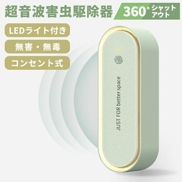 超音波駆蚊器 蚊取り 虫よけ 超音波 害虫にだけ効く LEDライト 常夜灯 コンセント式 充電いらず 過電流保護機能付き 家計にやさしい コンパクト 蚊よけ 小型 静音 衛生的 騒音なし オフィス 自宅 倉庫 ガレージ ホテル ホワイト グリーン 便利 実用的 使いやすい プレゼント ギフト