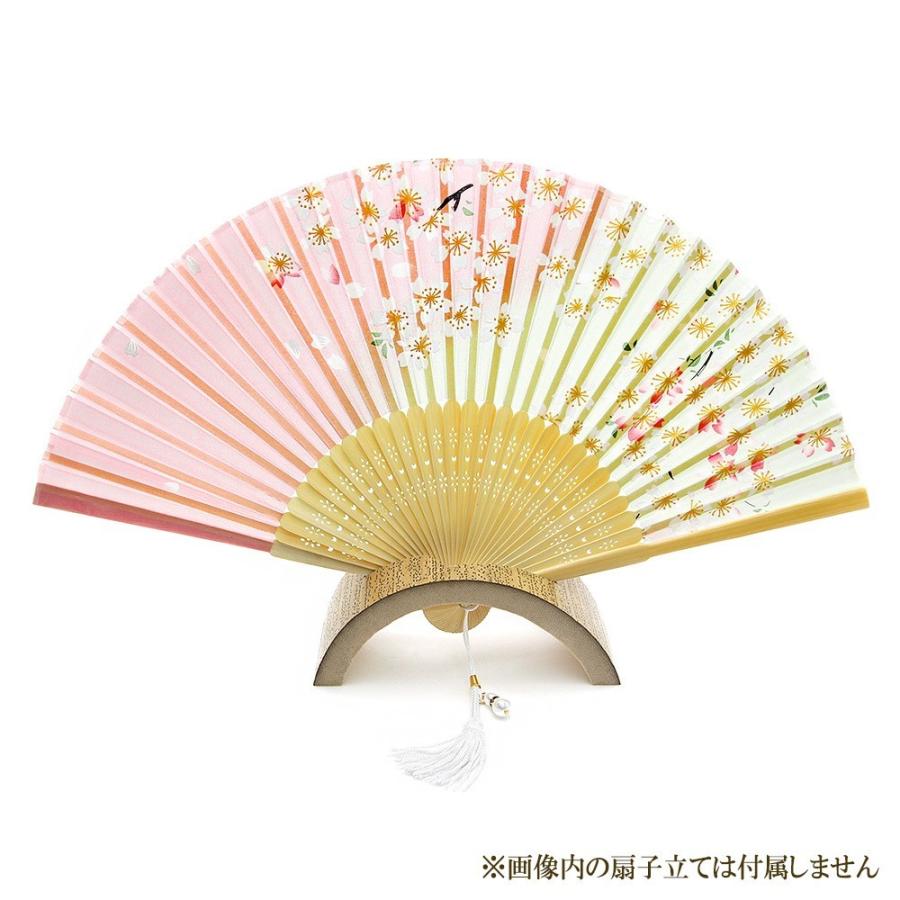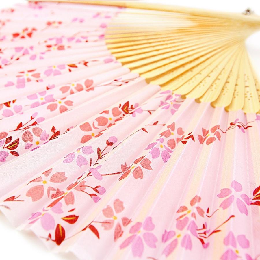 透け感のある生地に伝統的なサクラ柄が品の良い扇子です。