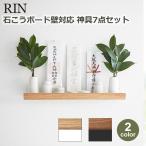 山崎実業(Yamazaki) 【 石こうボードピンセット・木ネジ 付属 】 石こうボード壁対応 神棚 神具セット ブラウン 神棚:約W45×D12×H5cm リン RIN お札立て 陶器 神棚+神具7点セット 3658