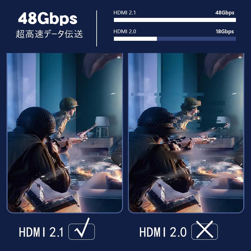 【最新の2.1規格】HDMI 2.0b / 2.0a / 2.0 / 1.4 / 1.3 / 1.2 / 1.1を含む従来のHDMI規格に加え、HDMI 2.1に対応し、PS5・Xbox Series X / S等の家庭用ゲーム機で、4K (120Hz) の超高画質でコンテンツをお楽しみいただけます。 (※4K (120Hz)での出力には、お使いのディスプレイが4K (120Hz)に対応している必要があります。)