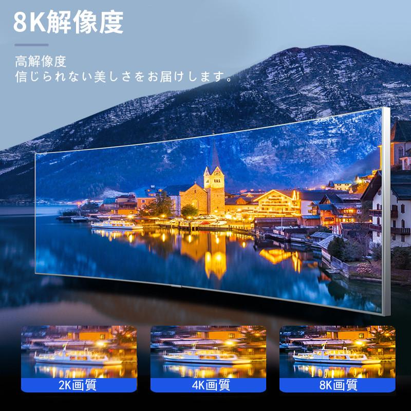 【8Kの超高画質出力】このケーブルは48Gbpsによる8K(60Hz)と4K (120Hz)の超高画質出力に対応。大画面でも高解像度のコンテンツをお楽しみいただけます。また、シーンごと、またはフレームごとにコントラストや明るさを最適化するDynamicHDRにも対応。鮮明な画面でコンテンツをお楽しみいただけます。