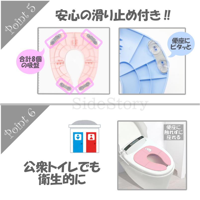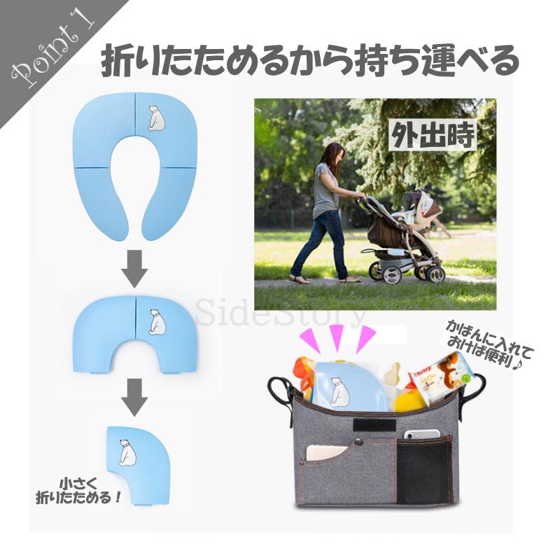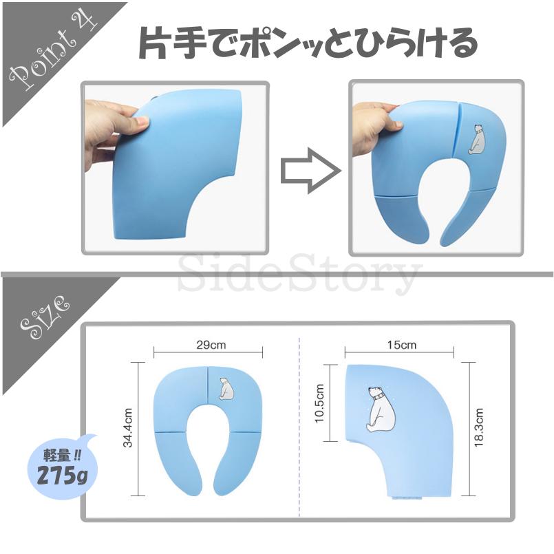 商品名:子供用補助便座コンパクトに折畳み可能なので使い勝手抜群普段のお出かけにはもちろん旅行時等にも大活躍吸盤固定式でズレる心配もありません汚れても丸洗い可能なので衛生面も安心重さも275gと軽量なので普段使いのカバンに入れてお子様とのお出かけできますサイズ:使用時:約34.4cm×29cm 折畳み時:約10.5cm×15cm×18.3cm重量:約275gカラー:ブルー ピンク イエロー