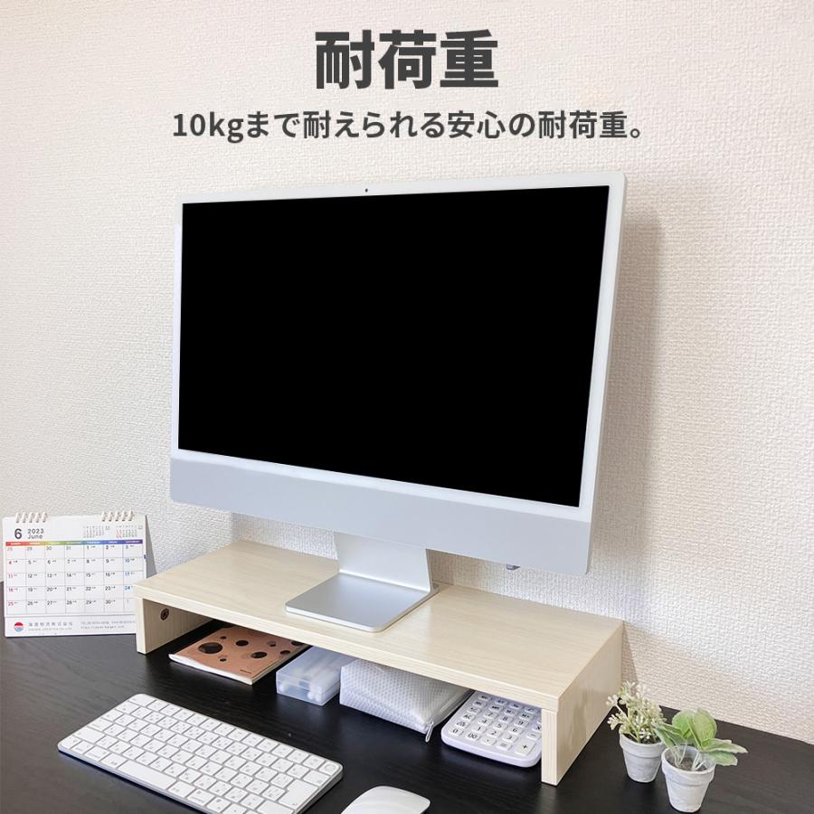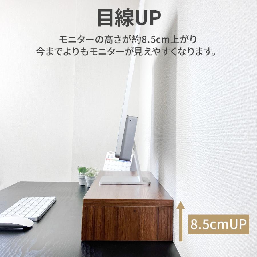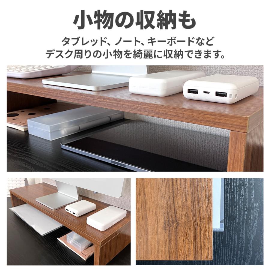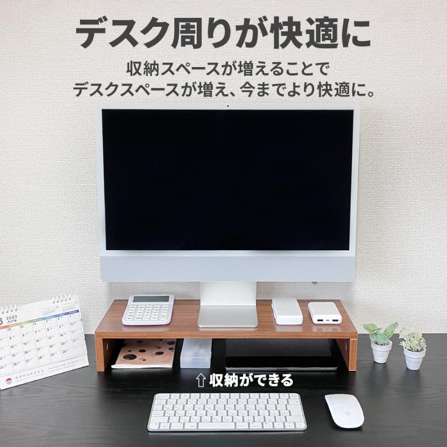 モニター台の下にスペースができるのでPC周辺機器や雑貨や小物を収納すればデスクがすっきり。
