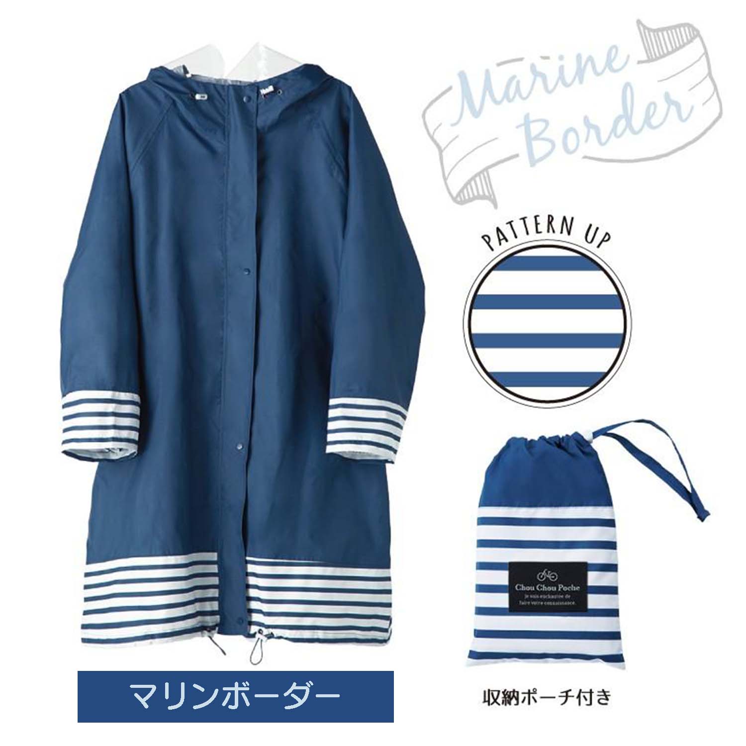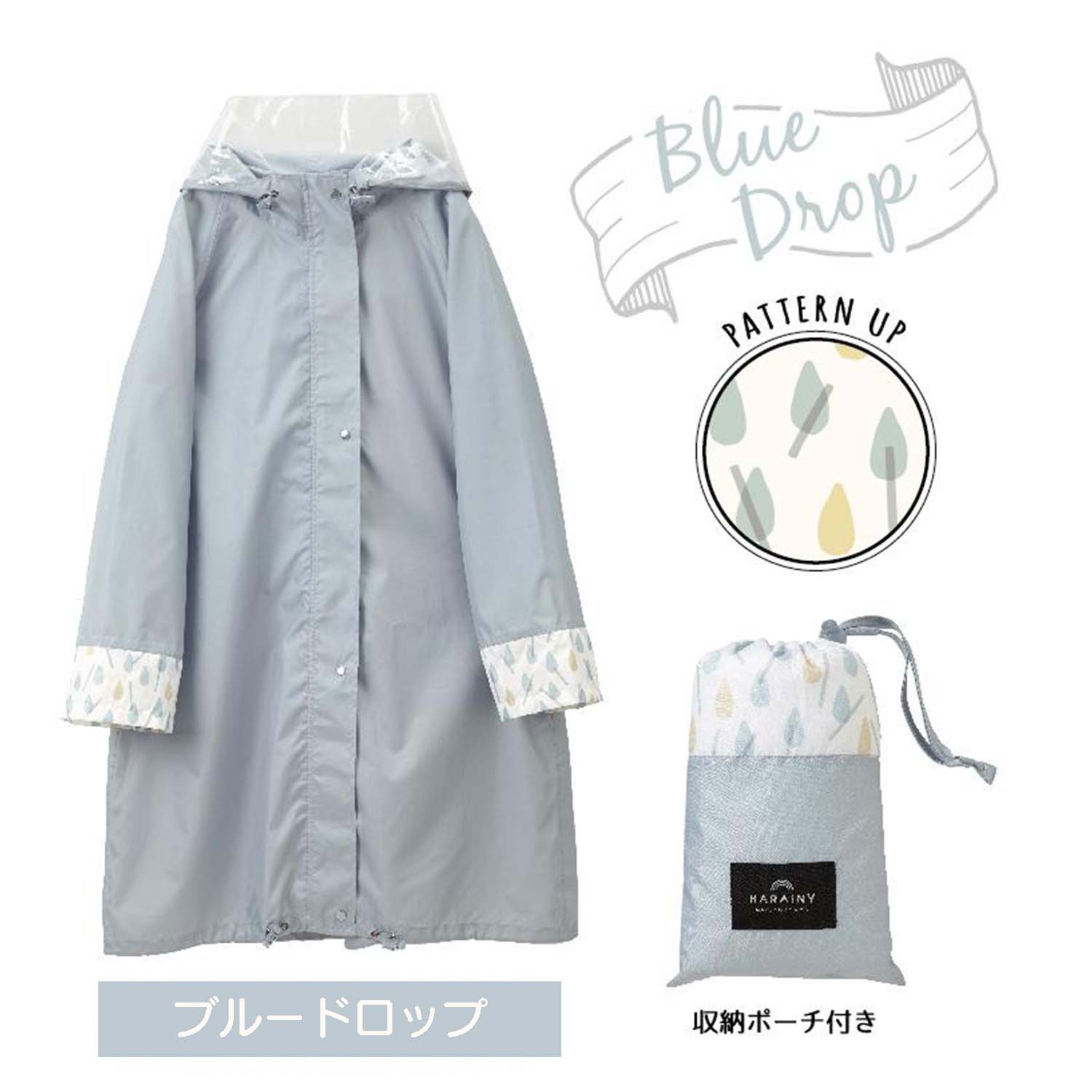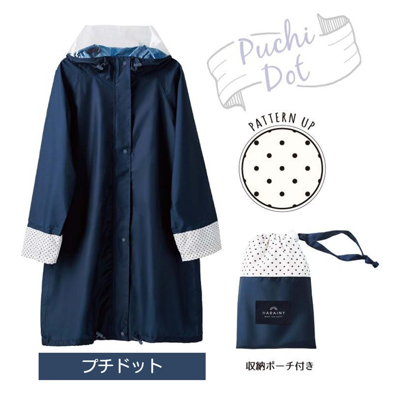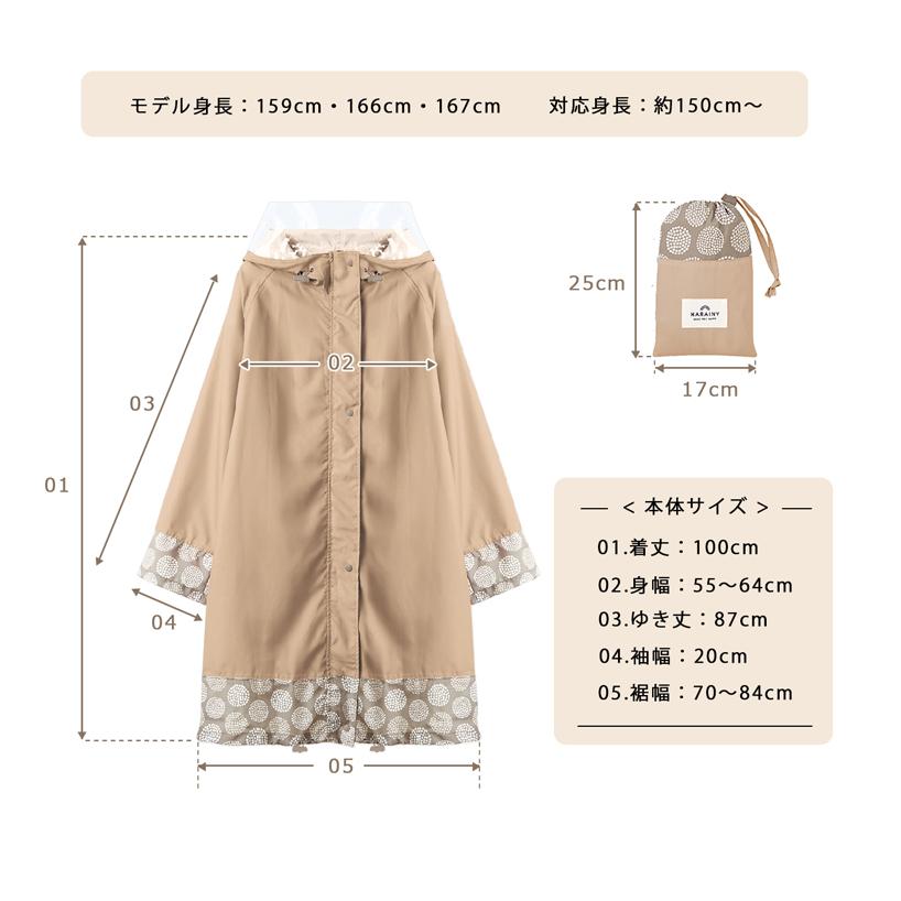 「転がる水滴」はっ水するレインコート。●身幅調整可能なフリーサイズ・オールシーズン仕様●大型透明バイザーで視界確保しやすい● 二重袖で防水性がアップ●袖がしぼれて捲れ上がり防止●大きめ袖でハンドルごとカバーできる●背中部分に反射生地と身幅調整プリーツ●縫い目からの雨の侵入を防ぐシムテープ加工●収納ポーチ付き※デザイン・仕様などは予告なく変更・改良することがありますので、予めご了承ください。