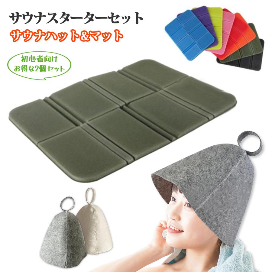 サウナに行く際に便利なサウナスターターセット。サウナ初心者にもおすすめ、最低限これだけあれば大丈夫!サウナハット&マットのセット。■折りたたんで持ち運べるサウナマット、ハットのセット。■サウナマットは抗菌加工済みで清潔♪【カラー】サウナマット:スカイブルー、パープル、グリーン、ピンク、レッド、オレンジ、カーキ、ブラックサウナハット:グレー、ホワイト【サイズ】サウナマット:38.5cm×27.5cm、30gサウナハット:高さ約23cm、頭周り約72cm、60g