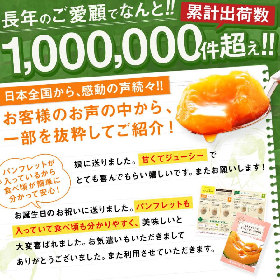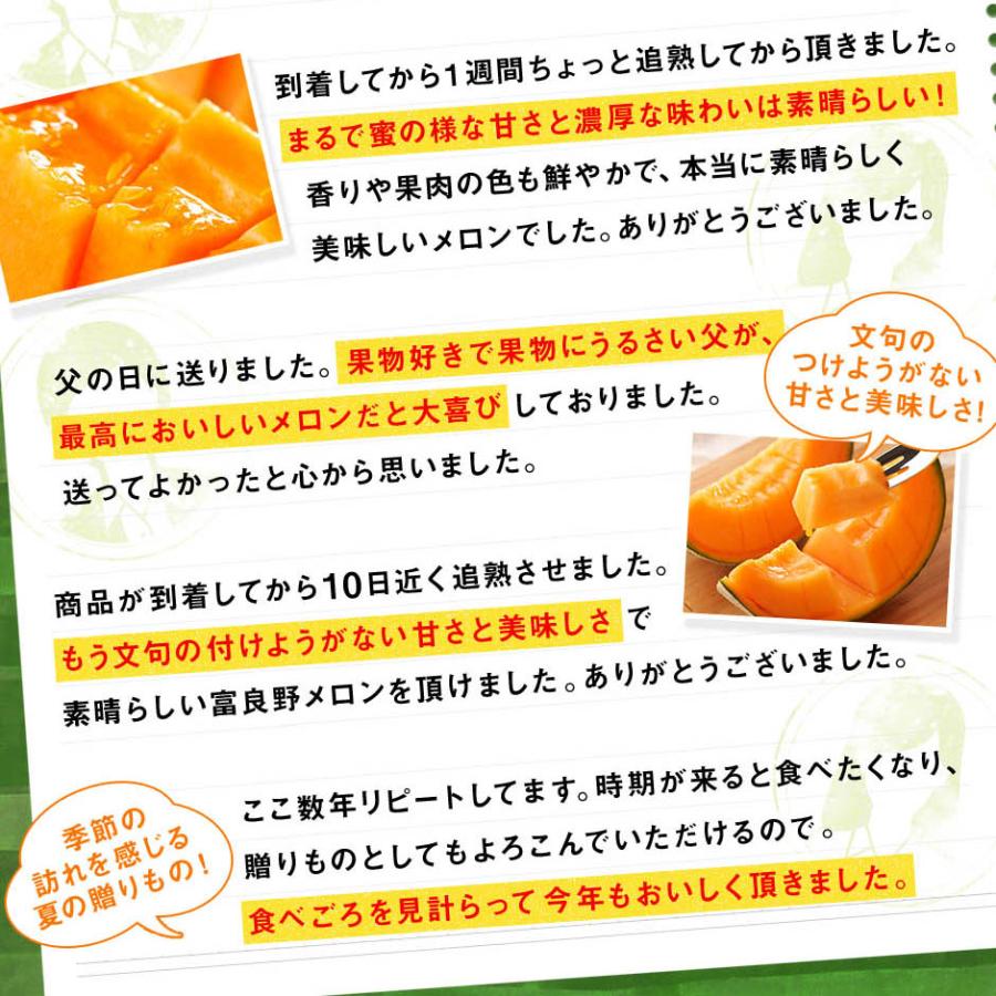※6月にお届けのメロンは、追熟期間が4日前後よりも短めになる場合がございますのでご注意下さい。