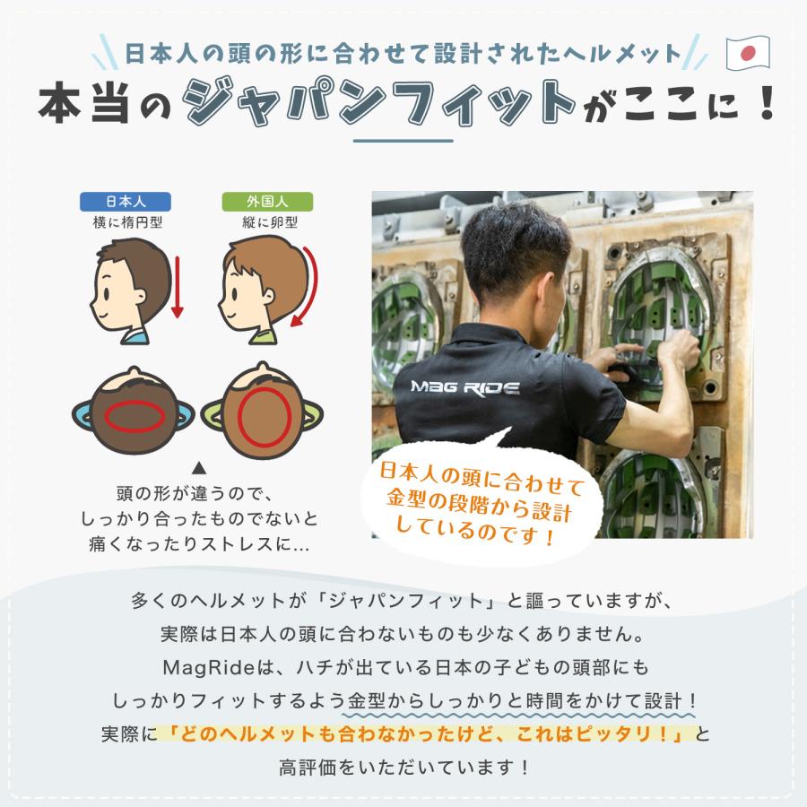 MagRide シリーズは日本人の頭部の形状に合わせた専用設計のため頭にピッタリとフィット!