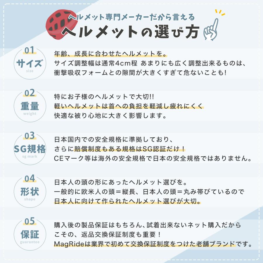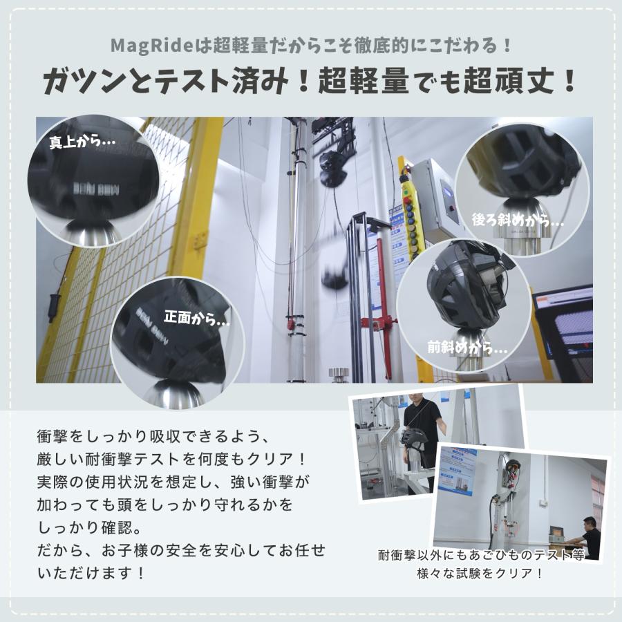 Mag Ride ニーニーゼロは、3歳からのセカンドヘルメットとして専用に開発&設計された子供用ヘルメットです。わずか220gの超軽量なヘルメットは、お子さまへの負担を極限まで減少し、ストレスなく着用出来るヘルメットです。日本で一番軽い、一歳からのヘルメット"イチハチロク"からのステップアップモデルとして開発されました。