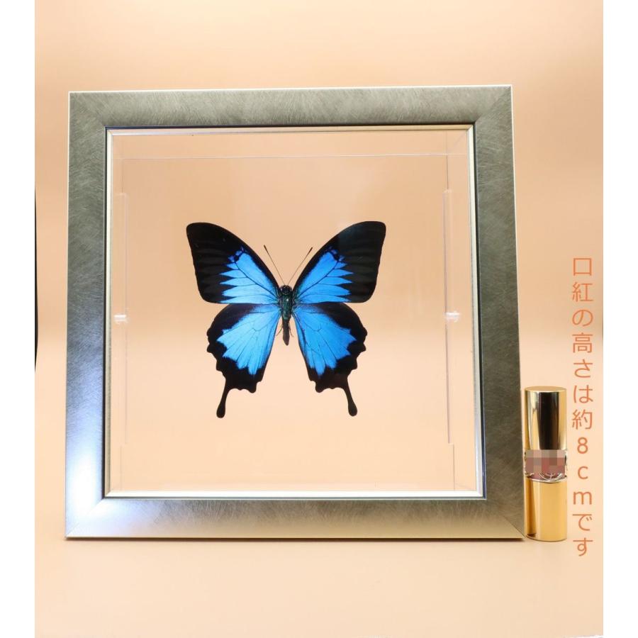 蝶の標本 オオルリアゲハ P.ulysses ライトフレーム チョウ バタフライ パピヨン