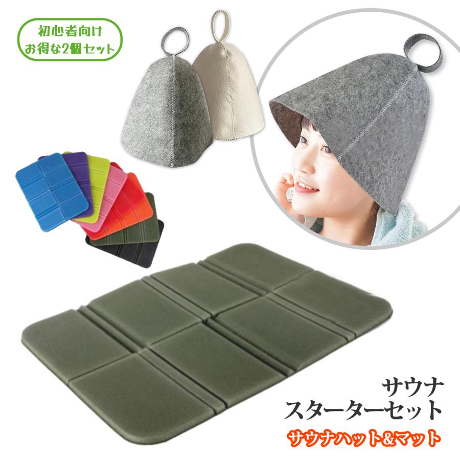 サウナに行く際に便利なサウナスターターセット。サウナ初心者にもおすすめ、最低限これだけあれば大丈夫!サウナハット&マットのセット。■折りたたんで持ち運べるサウナマット、ハットのセット。■サウナマットは抗菌加工済みで清潔♪【カラー】サウナマット:スカイブルー、パープル、グリーン、ピンク、レッド、オレンジ、カーキ、ブラックサウナハット:グレー、ホワイト【サイズ】サウナマット:38.5cm×27.5cm、30gサウナハット:高さ約23cm、頭周り約72cm、60g