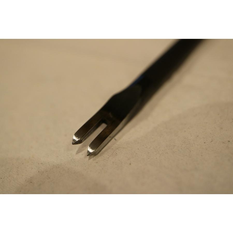 元から高品質なクラフト社の菱目打ちをベースに不要な角張りを削り落としつつ、刃の傷を形状が変わらない範囲で研磨してからバフ機で鏡面研磨して仕上げています。