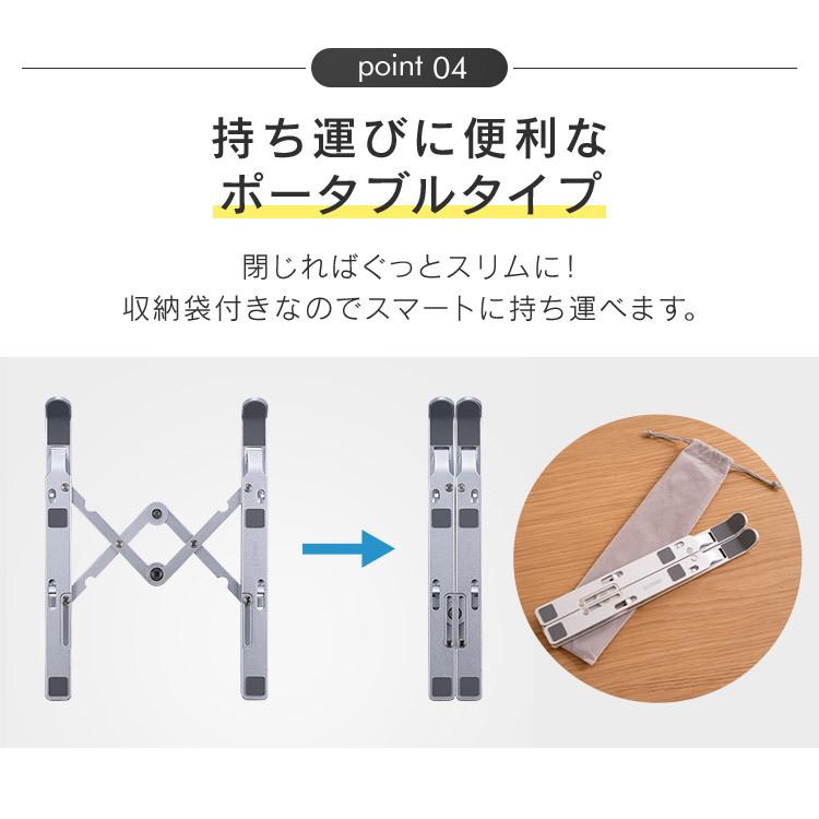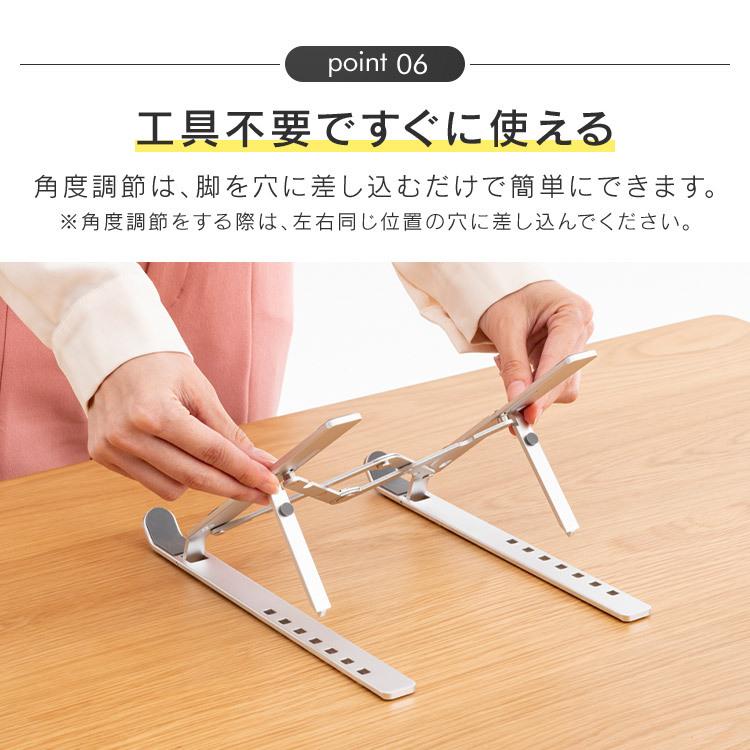超軽量で持ち運びに最適、角度が7段階に調節可能なPCスタンドです。