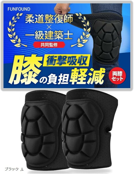 【楽天ランキング1位入賞】ベテラン建築士x柔道整復師と共同開発膝当て 両膝セット 膝パッド 作業用 運動用 膝プロテクター 衝撃吸収ニーパッド 日本ブランド (ブラック, L)