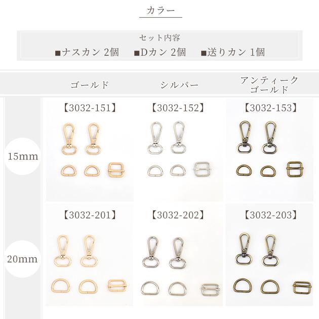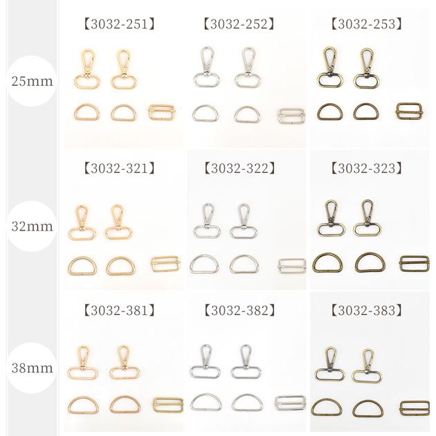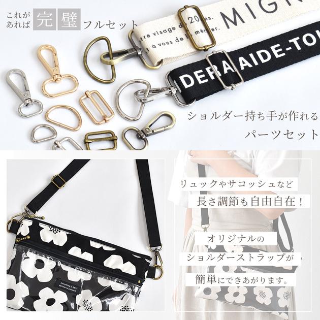 ショルダー パーツ セット 5サイズ 全3色 15mm 20mm 25mm 32mm 38mm ナスカン Dカン 送りカン 金具セット アジャスター 長さ調節