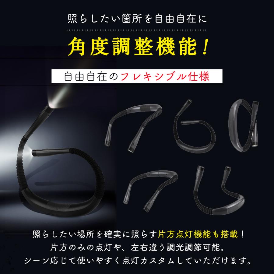 【商品名】ネックライト 充電式 led usb 犬 散歩 釣り 明るい 読書灯 首掛けライト 強力 作業灯 ledライト 懐中電灯 ヘッドライト ウォーキング 散歩 夜釣り 防災 ブックライト コードレス 首 首掛け 2WAY 首 首掛け 2WAY 首にかけるライト ハンズフリーライト 明るさ調整 角度調整 点灯モード切替 軽量設計 長時間点灯 フレキシブルアーム 2灯式 ダブルライト 高輝度 夜間作業 防災グッズ アウトドア キャンプ ランニング ペット散歩 工事 現場