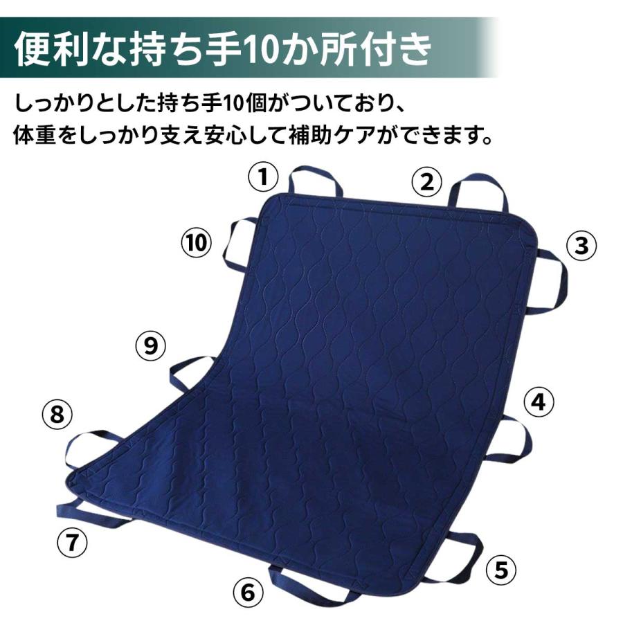 ベット上での体の移動を楽に行える介助シーツです。床ずれ予防、立ち上がり補助、リハビリ運動にもおすすめです。