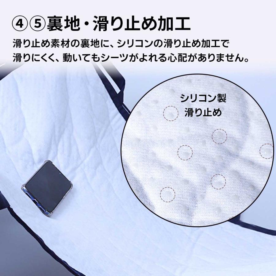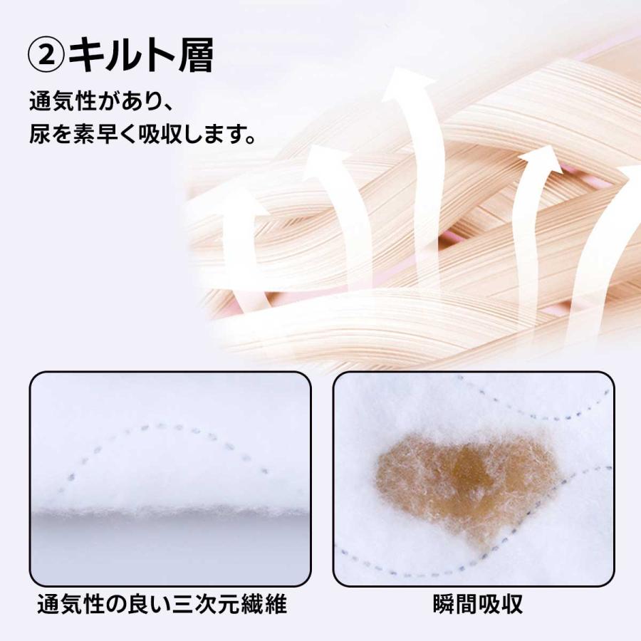 就寝中の尿漏れを防ぐ5層構造。中間層に湿気を閉じ込めるTPU防水層を施し、布団をしっかりガードします。