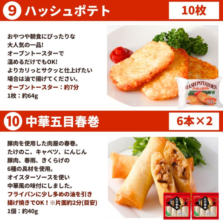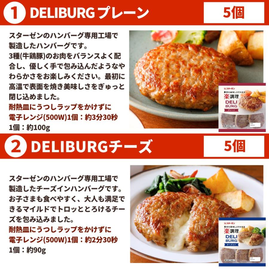 10商品から4種選べる!(1)DELIBURGプレーン(2)DELIBURGチーズイン(3)ちょびチキ(4)肉だんご(5)焼鳥(もも)(6)焼鳥(ねぎま)(7)北海道コロッケ(牛肉)(8)北海道コロッケ(カレー)(9)ハッシュポテト(10)春巻 (中華五目)