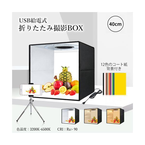 撮影ボックス 40cm 折りたたみ撮影BOX 折りたたみ式スタジオ 簡易スタジオ LED照明 調光 USB給電 背景12色付属 光色3種類