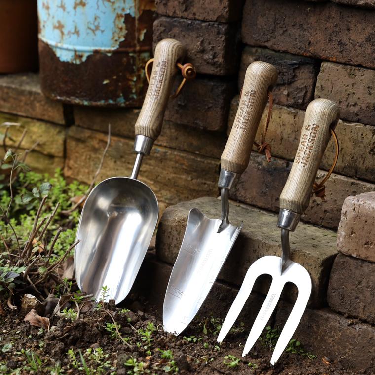 ●商品名:Spear&Jackson ガーデンツール 3点SET●材質:ステンレススチール、木、革ひも●サイズ:移植ごて:全長約31.5cm(ブレード/巾約6.5cm 長さ約15cm)幅 約145mm ハンドフォーク:全長約28.5cm(ブレード/巾約7.5cm 長さ約12cm) ソイルスコップ:全長約31.5cm(ブレード/巾約8.0cm 長さ約14.5cm)●ブランド:Spear & Jackson
