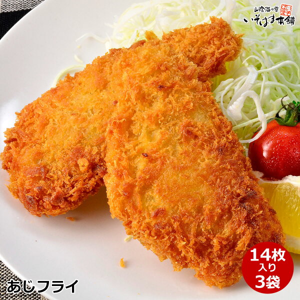 厳選した鯵を三枚におろしたフィーレに、衣になるパン粉にもこだわって作られたアジフライ。 揚げるだけの簡単調理で、お子様でも食べやすい、骨取り半身の大きさです。 揚げたてのサクッとした衣と、そのあとに続くフワッとしたアジの身をお楽しみください。 レモンやソースをかけても美味しいですよ。