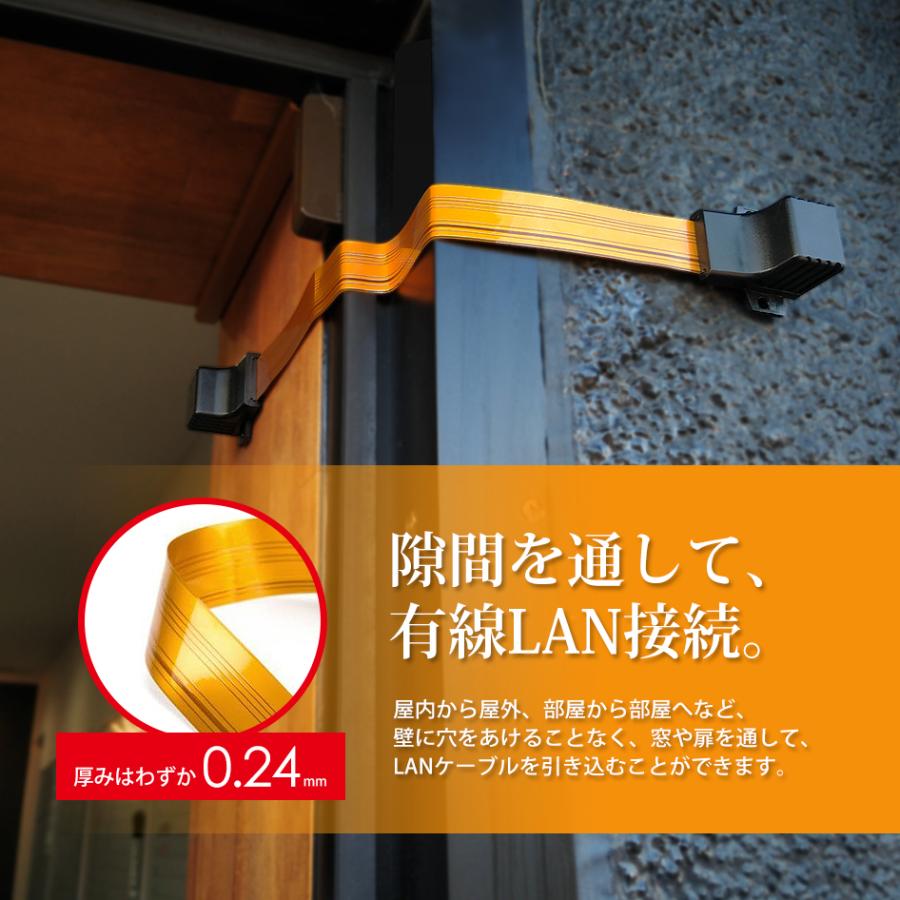 ドア、窓サッシ、引き戸などの扉の隙間を通して、有線ネット接続の無いお部屋に有線LANケーブルを引き込めます。