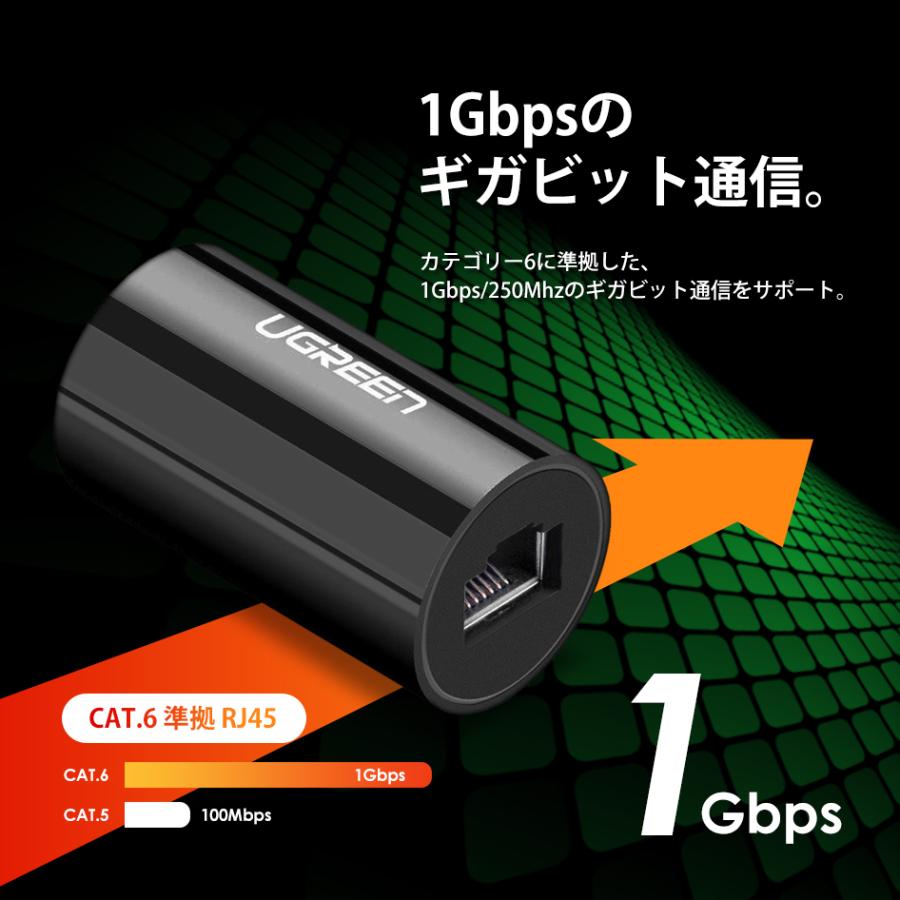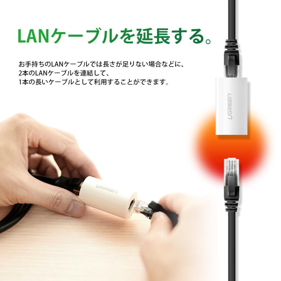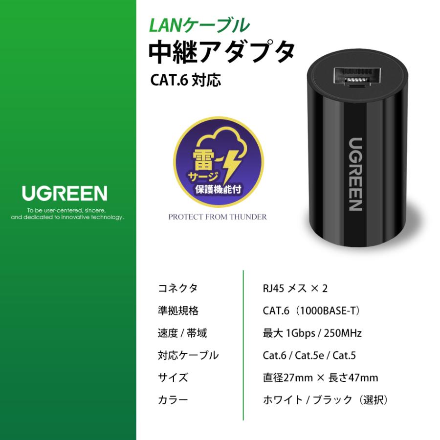 UGREEN LANケーブル 中継アダプタ 雷サージ対策 延長コネクタ cat6 cat5e ギガビット通信 RJ45 LAN端子 1Gbps 1000Mbps メス-メス