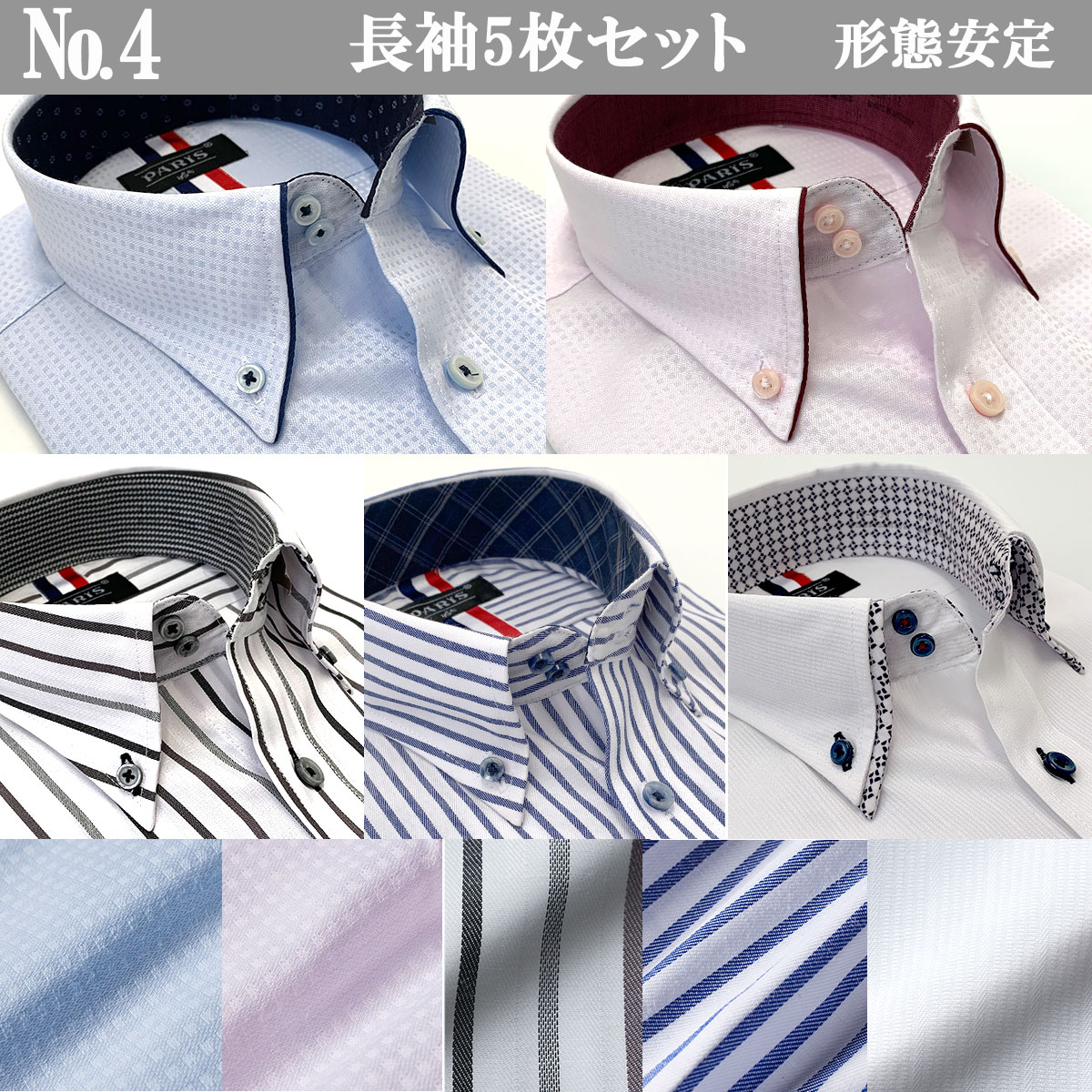 長袖ビジネスワイシャツ 5枚セット 白 ブルー ピンク