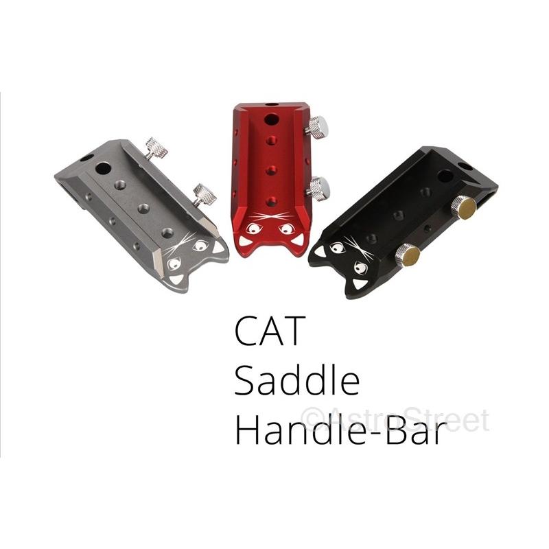 WilliamOptics社RedCatシリーズ用のサドルハンドルバー猫のマークがかわいいですね!RedCatシリーズの鏡筒バンドに接続して利用します溝はビクセンファインダー規格と互換になっており、各種アリガタそのままスライドして固定可能です取手、ハンドルとしても利用可能です