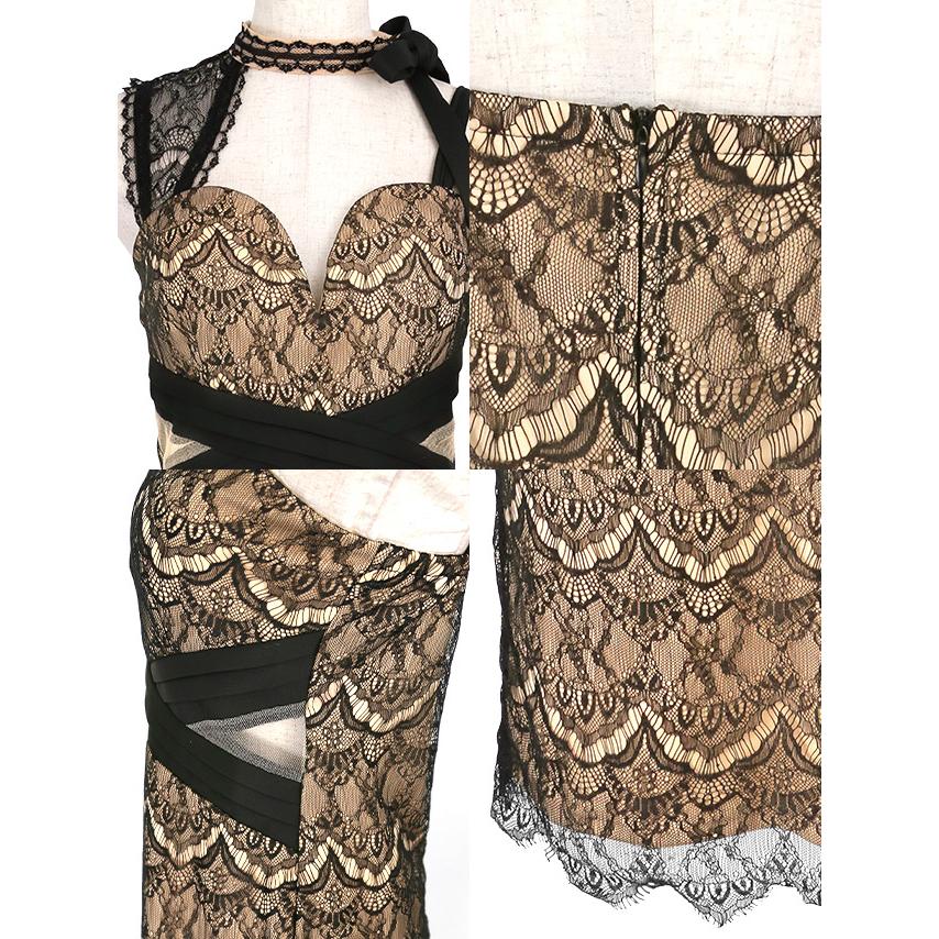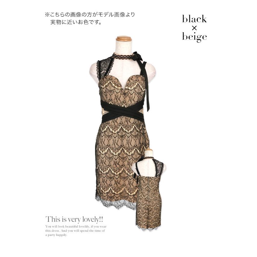 キャバドレス 大きいサイズ ミニ スナック キャバワンピ キャバクラ 激安 ミニワンピース ラウンジ ブラック ベージュ ヌーディー 上品 キャバ嬢 ワンピース ホステス ガーリー フェミニン 黒 総レース ネックリボン キャバワンピ ミニ
