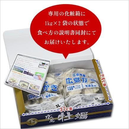 商品内容:広島県産カキむき身1kg×2袋(加熱用/生食不可)25粒前後3Lサイズ(広島湾海域で養殖)