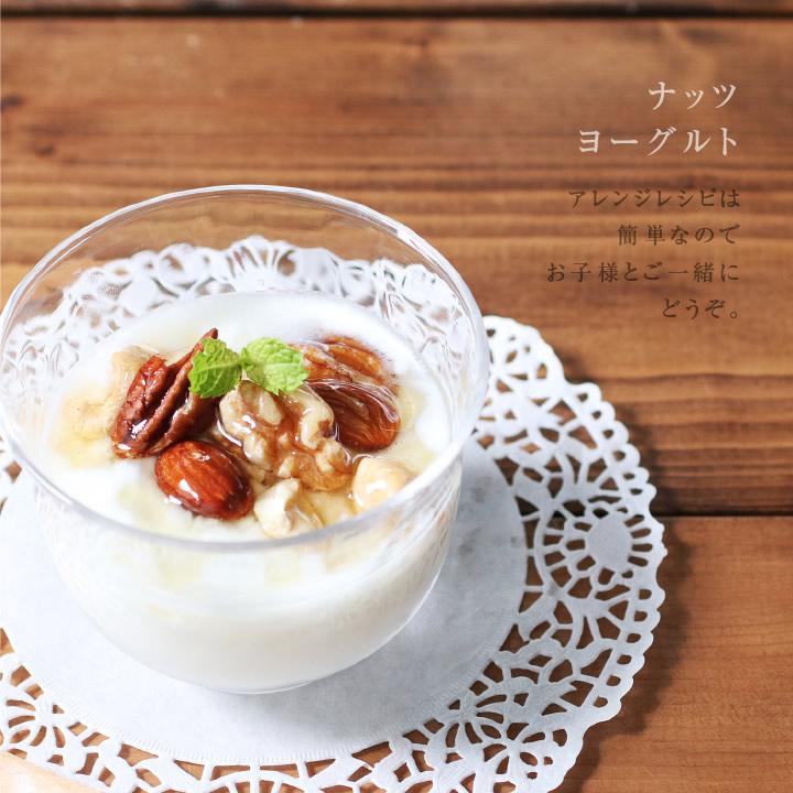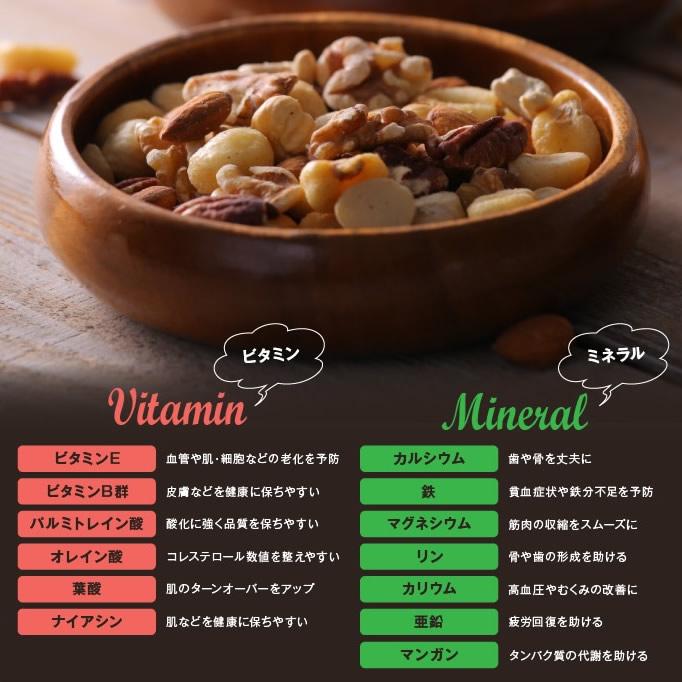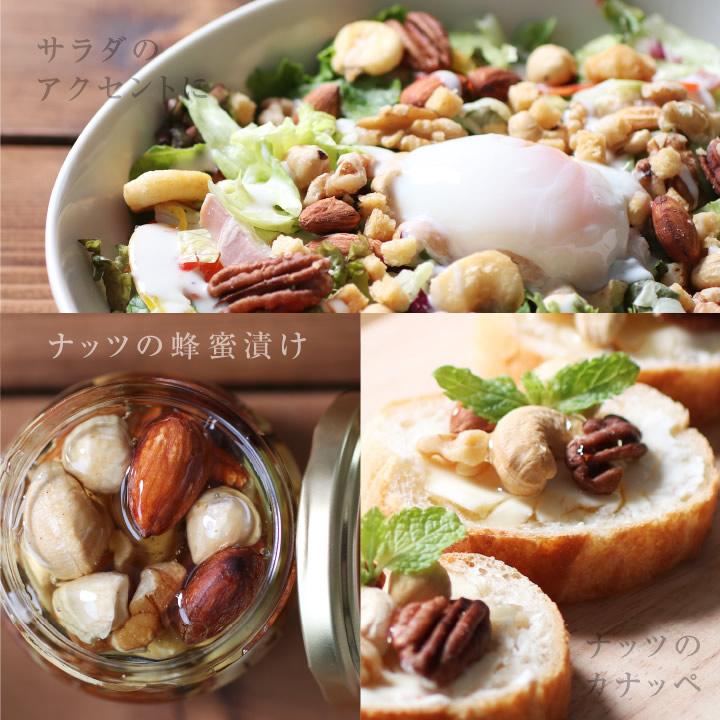カシューナッツ(インド産)、マカデミアナッツ(オーストラリア産)、アーモンド(アメリカ産)、クルミ(アメリカ産)、ジャイアントコーン(ペルー産)、ピーカンナッツ(アメリカ産)、植物油脂、岩塩、食塩、胡椒/調味料(アミノ酸等)